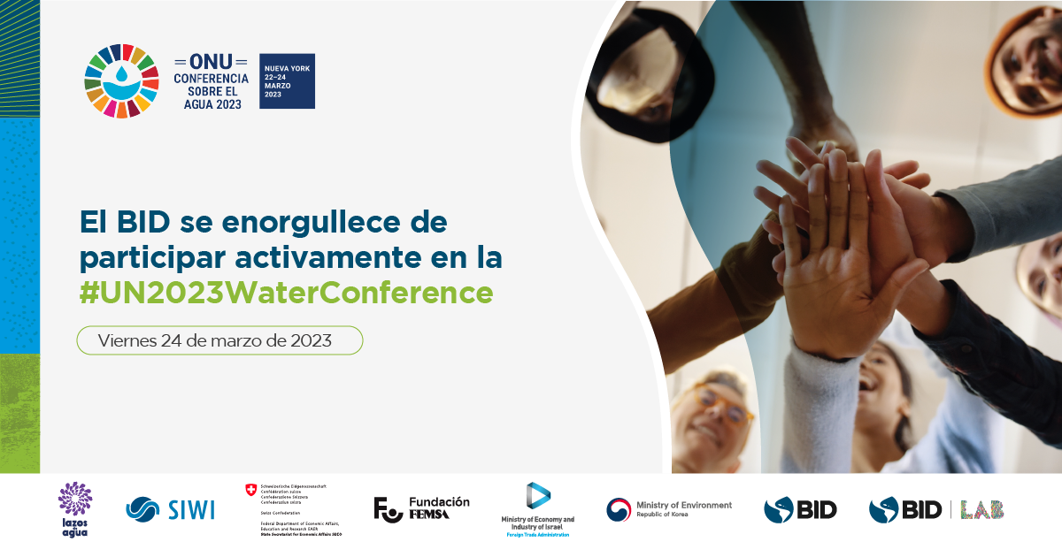 Liderado por el BID —en colaboración con la Secretaría de Estado para Asuntos Económicos (SECO) del Gobierno de Suiza, el Gobierno de Israel, el Ministerio de Medio Ambiente del Gobierno de Corea del Sur, la Fundación FEMSA y el SIWI—, este evento tendrá lugar el viernes 24 de marzo de 8:00 a 9:15 a. m. (ET) en la sede de la ONU y en línea.
