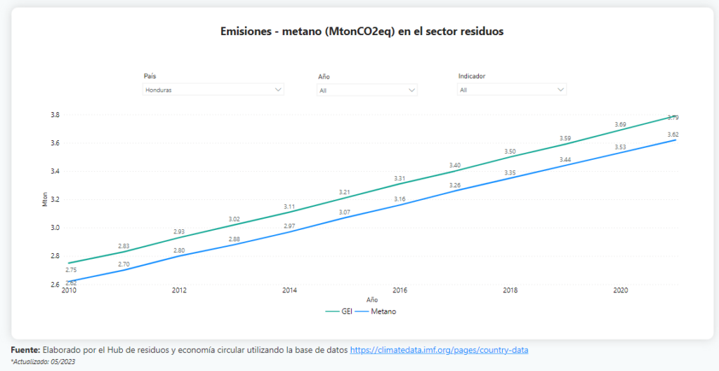 Fuente: Elaborado por el Hub de residuos y economía circular utilizando la base de datos https://climatedata.imf.org/pages/country-data*Actualizado: 05/2023