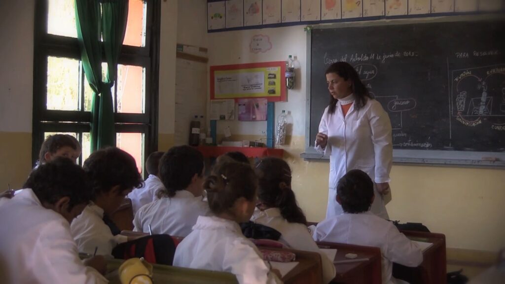 Estamos en Chacras de Borghi, ubicada en el departamento uruguayo de Flores, a 2,30 horas al norte de Montevideo. Aquí, las escuelas incluyen dentro de sus contenidos la educación sobre el uso y el cuidado del agua, ya que los 49 habitantes de la provincia han crecido sin agua potable y ayudando en sus casas a proveer del recurso hídrico. “Tenemos que ir a acarrear con baldes o bidones, a veces en carretilla, a veces en bicicleta o a veces caminando”, cuenta una de las niñas que vive en esta localidad.