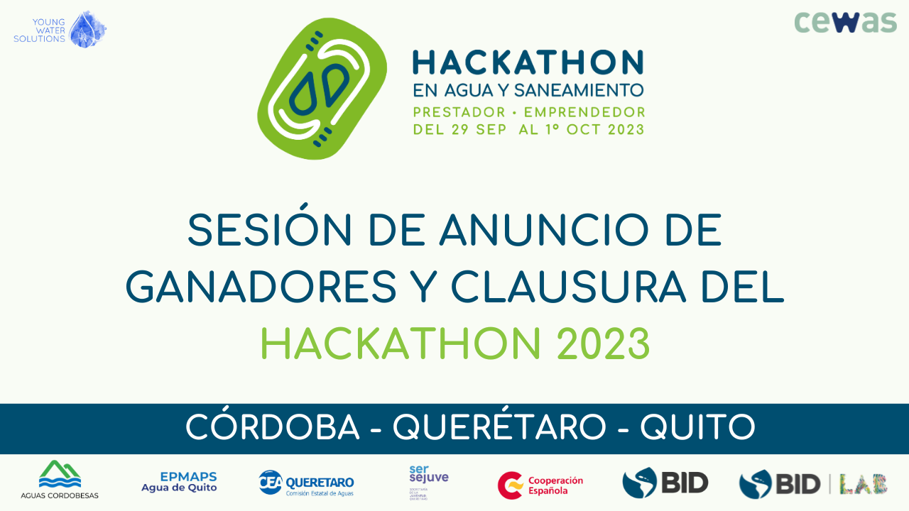El pasado 5 de octubre de 2023 se realizó la sesión de anuncio de los ganadores y la clausura del Hackathon en agua y saneamiento: Prestador-Emprendedor 2023, evento que se realizó de forma paralela y presencial en Córdoba (Argentina), Querétaro (México) y Quito (Ecuador)
