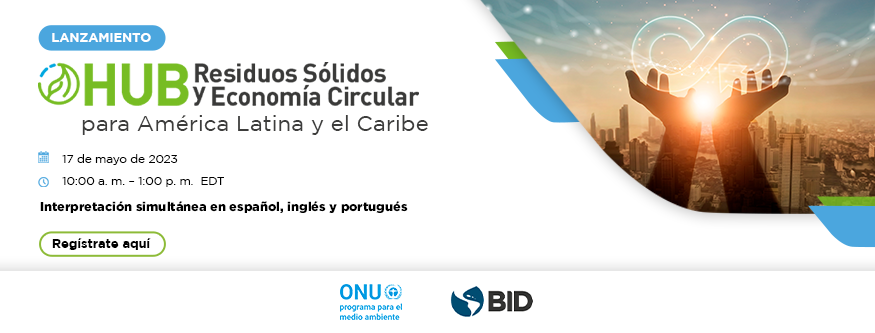 Este 17 de mayo de 2023 a las 10:00 a. m. (ET) realizaremos el lanzamiento Hub de residuos y economía circular para América Latina y el Caribe. Los invitamos a registrarse en el Webinar gratuito y a visitar el sitio web www.hubresiduoscirculares.org, que estará disponible a partir del día del evento.