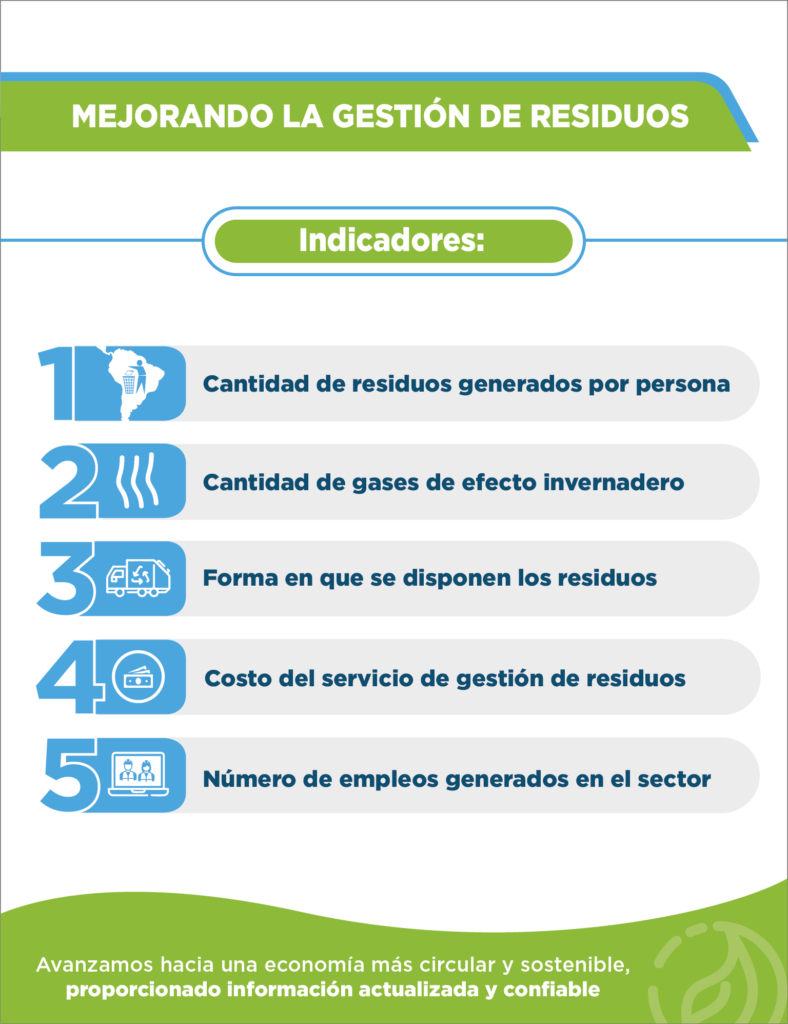 Uno de los desafíos prioritarios en la gestión de residuos sólidos en la región de América Latina y el Caribe es la escasa disponibilidad de datos confiables y comparables, lo cual dificulta la evaluación de las políticas y estrategias, la definición de metas realistas y la medición de los progresos y efectividad de las inversiones.