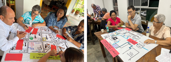 Imagen 1: Miembros de las organizaciones comunitarias analizando sus operaciones para identificar el desafío del Hackathon 2024