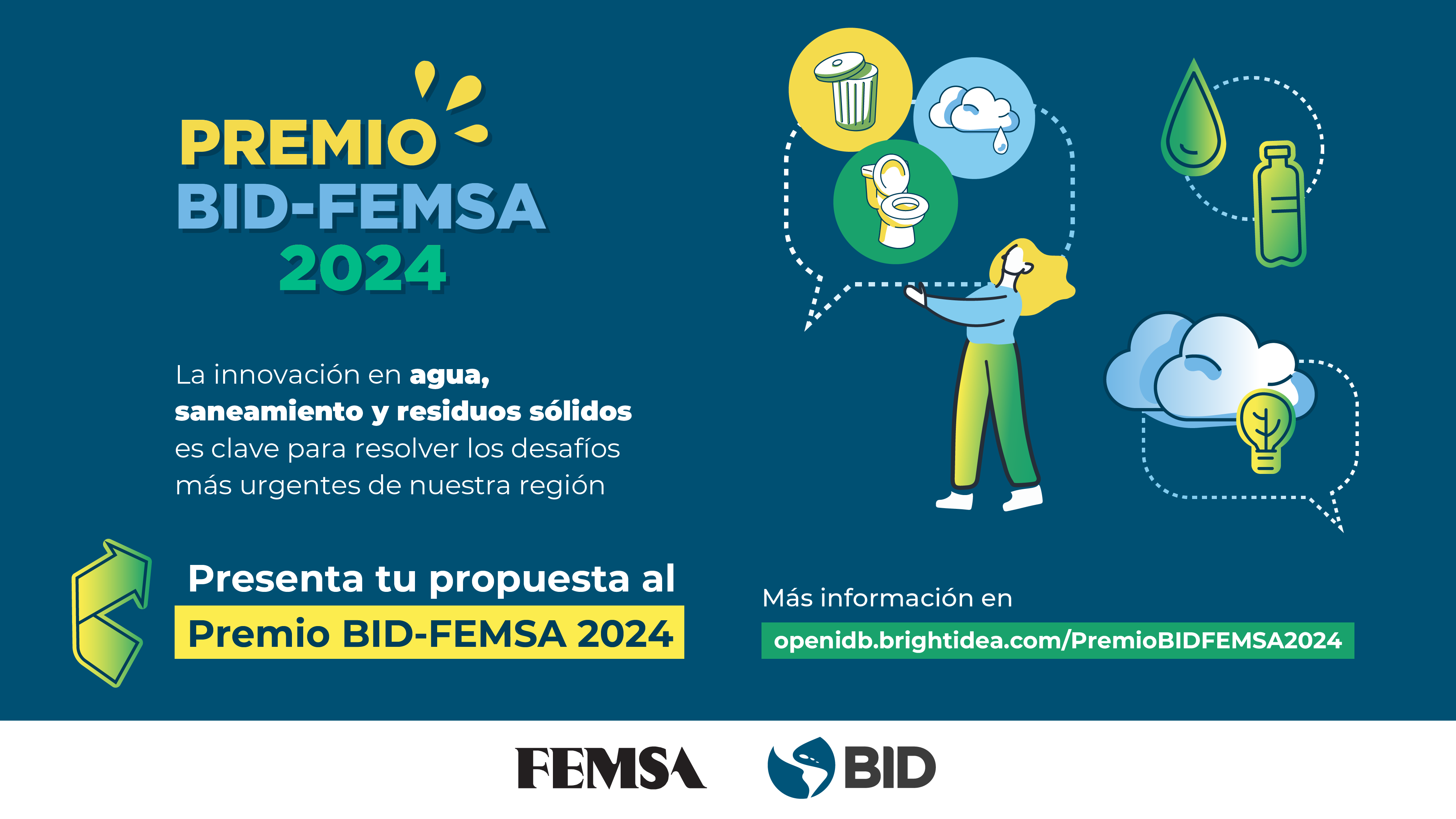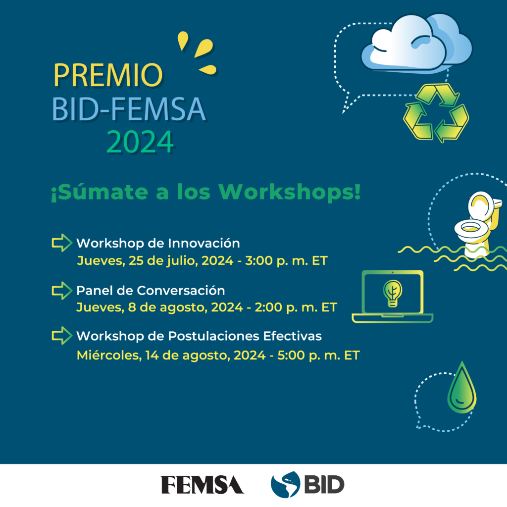 La convocatoria para el Premio BID-FEMSA 2024 está abierta a personas mayores de 18 años que formen parte de un emprendimiento, producto, iniciativa o servicio innovador enfocado en agua, saneamiento o residuos sólidos que esté mejorando vidas en América Latina y el Caribe.