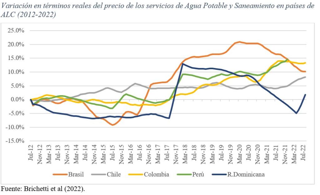 Especial atención debe prestarse a los dos últimos años donde convergieron la pandemia del COVID-19 (que vino acompañada por congelamientos en las tarifas para evitar una mayor afectación de la población) y un incremento significativo en la inflación en la mayoría de los países a causa del contexto internacional. En muchos casos, la confluencia de ambos factores ha ocasionado una reducción de valor real de las tarifas de servicios públicos.
