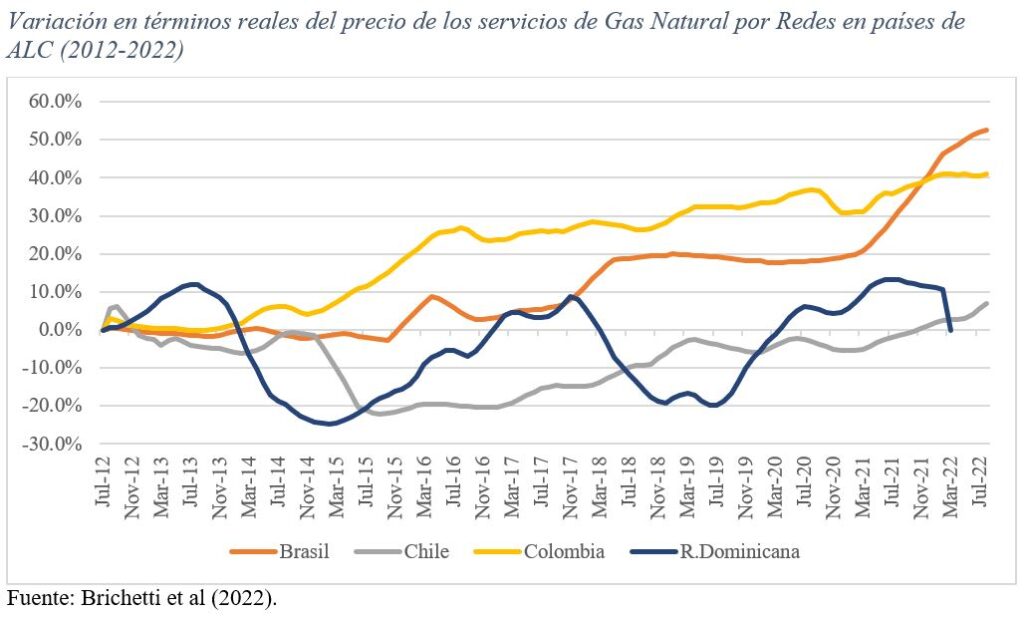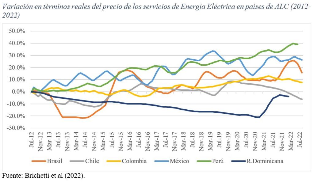 En el caso de la electricidad, el precio se incrementó en un rango entre 7,8% en Colombia y 39% en Perú; mientras que, en gas natural, los incrementos reales de precios en Colombia y Brasil alcanzaron el 41% y 52%, respectivamente.