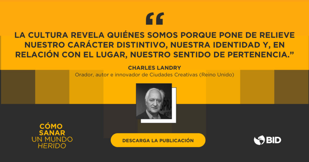 - Apuntar a tener impacto en el largo plazo: Charles Landry escribe que la cultura y la creatividad pueden ayudar a abordar las “profundas, intratables y polémicas” fisuras que dividen a nuestras sociedades, y cuya resolución es lenta. En el mundo del desarrollo, hay pocas “victorias rápidas”. Limpiar y restaurar un río urbano, modernizar un sistema judicial, descarbonizar un sector energético: todo ello requiere décadas de atención y compromiso sostenidos. Sáez de Ibarra sostiene que los artistas tienen la capacidad de conectar el pasado y el presente de las personas con sus esperanzas para el mañana. Por eso el BID, como banco de desarrollo, considera a los sectores culturales y creativos como aliados esenciales en todos los aspectos de su trabajo, pues permiten garantizar que los abstractos planes de desarrollo puedan mejorar lo que Carolina Huffmann y sus colaboradores describen como “el mundo cotidiano de las experiencias vividas por las personas”.