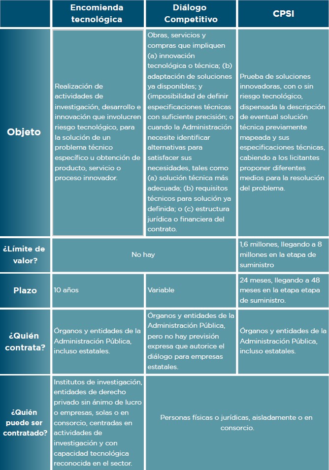 Aprobado en junio de 2021, el Marco Legal para Startups y Emprendimiento Innovador creó una modalidad especial de licitación dirigida específicamente a probar soluciones innovadoras por parte de la Autoridad Pública. Hasta entonces, uno de los grandes dilemas de la relación entre el Estado y las startups (empresas emergentes) era precisamente la dificultad de formalizar la contratación de soluciones probadas en programas de innovación abierta, sobre todo por la paradoja de tener que realizar una licitación para contratar una solución probada, validada y construida a cuatro manos con el propio Poder Público.