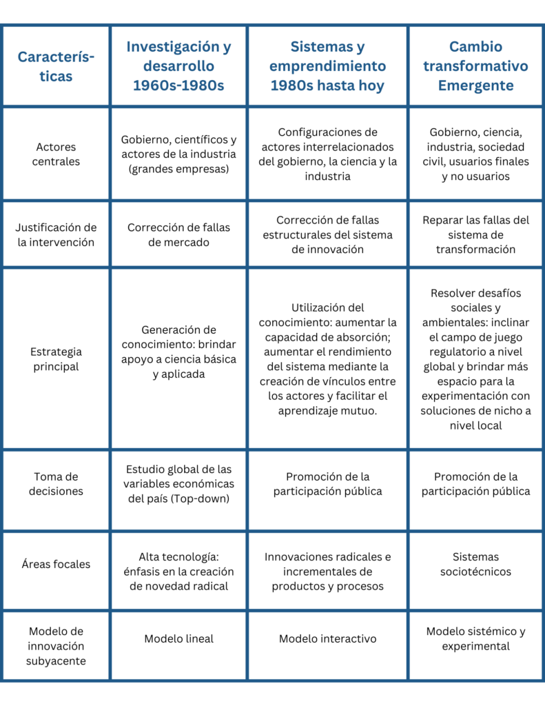 En la tabla a continuación, se muestra la evolución de las políticas de CTI en América Latina y el Caribe a lo largo del tiempo: