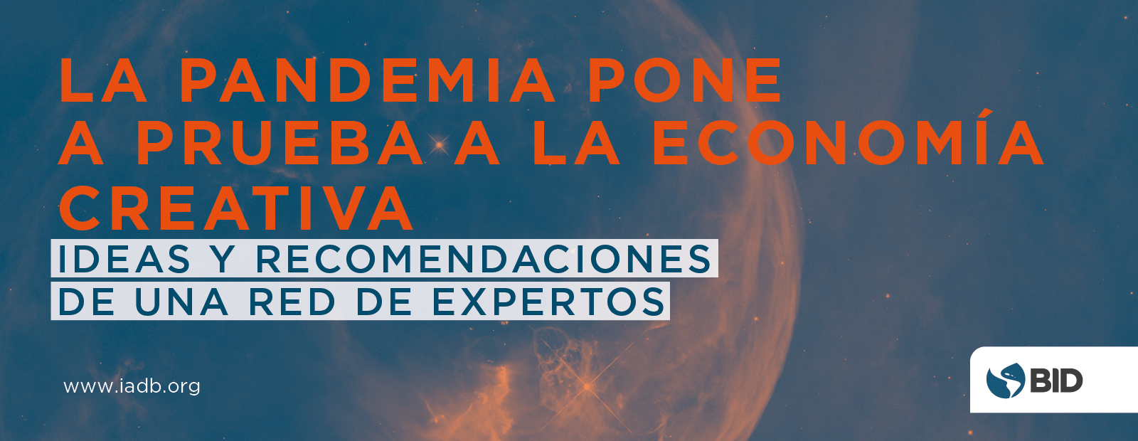 nte esta realidad, el Banco Interamericano de Desarrollo organizó una serie de reuniones con expertos del sector cultural y creativo de América Latina*. Sus objetivos eran revisar y analizar el impacto y las consecuencias de la pandemia en los subsectores de la economía cultural y creativa, e identificar soluciones y medidas que pueden ser incorporadas en las estrategias de respuesta a la crisis con un enfoque integral y de largo plazo. Se analizó dicha perspectiva para evitar que la situación que enfrentan los agentes culturales y creativos se agrave más y debilite de forma considerable su identidad, talento, y desarrollo social y económico.