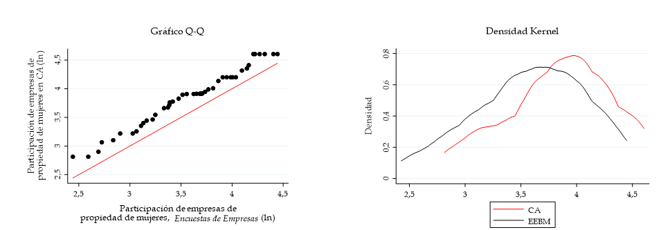 Los datos sobre cantidades y participaciones de empresas de propiedad de mujeres a nivel de país-sector fueron obtenidos de las Encuestas de Empresas del Banco Mundial.