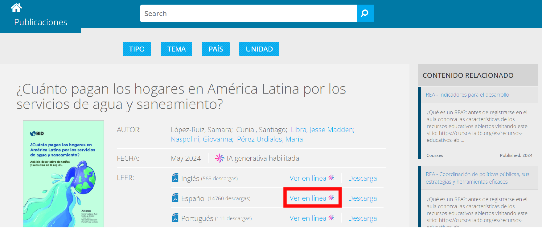Para ver más publicaciones revisadas por pares que cuentan con esta función, visita el Catálogo de Publicaciones del BID y busca libros, documentos de trabajo y monografías que tengan la etiqueta “IA generativa habilitada”. Las reconocerás por el ícono de la florcita morada: