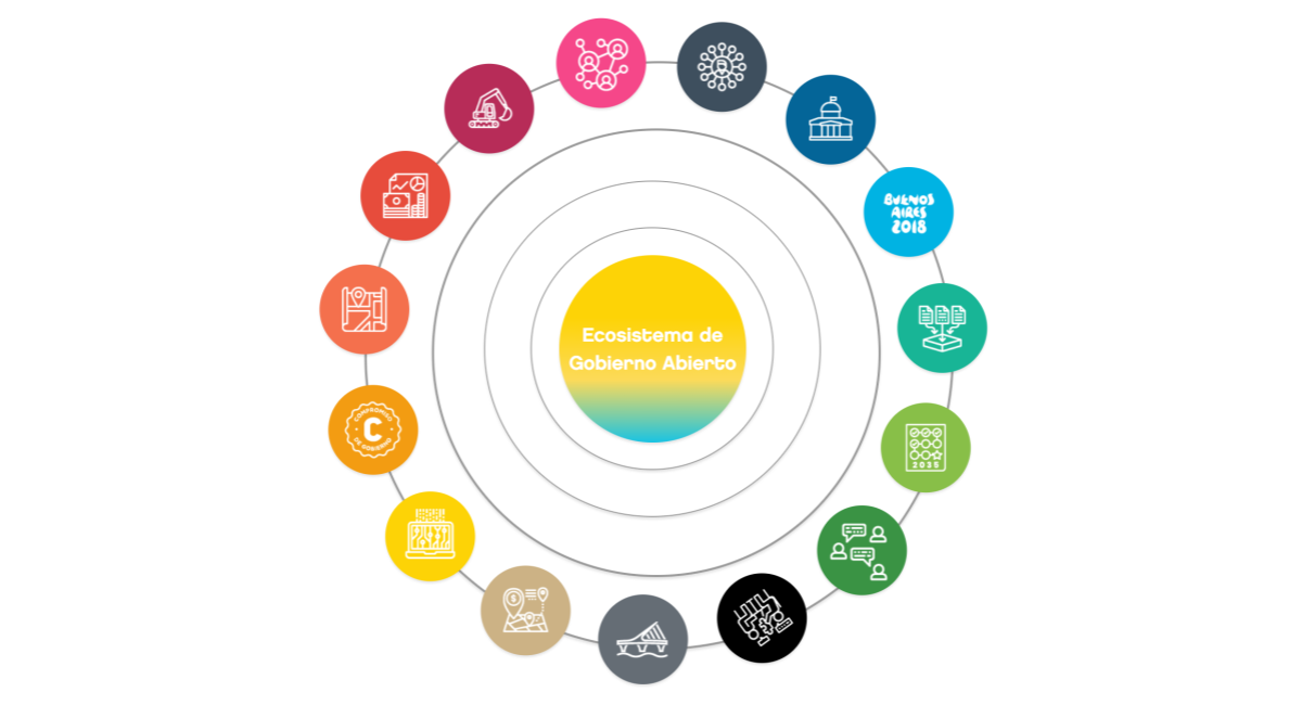 En 2016 fuimos una de las 15 ciudades pioneras en sumarnos a la Alianza de Gobierno Abierto y poner en marcha un Ecosistema de Gobierno Abierto; una plataforma que reúne 15 iniciativas innovadoras como los Compromisos de Gobierno, la Plataforma de Presupuesto Abierto, Juegos Olímpicos Abiertos, el Mapa de Oportunidades Comerciales y BA Elige, entre otros.