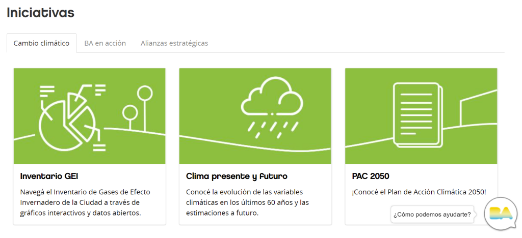 Es así como se construyó BA Cambio Climático, una plataforma que reúne en un mismo lugar todas las políticas de eficiencia energética, movilidad sustentable y gestión de residuos que implementa actualmente el GCBA. En un esfuerzo por seguir fomentando la participación proactiva de los ciudadanos, la página también ha publicado políticas de educación sobre el clima, de espacio urbano y de consumo sustentable. Asimismo, ha incluido más de 40 conjuntos de datos abiertos ambientales que pueden ser reutilizados en proyectos de monitoreo, visualizaciones interactivas y propuestas de participación, colaboración y cooperación para cumplir con el Plan de Acción Climática 2050 del GCBA. La meta es trabajar juntos para lograr vivir en una ciudad resiliente, inclusiva y carbono neutral.