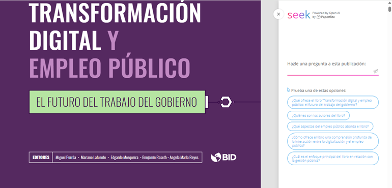 El auge de la inteligencia artificial generativa está transformando cómo trabajamos y cómo accedemos a la información. Hace poco más que un año lanzamos una funcionalidad impulsada por IA en nuestro Catálogo de Publicaciones que permite a investigadores, hacedores de políticas, estudiantes y al público hacer preguntas sobre una publicación tal como lo harían con un colega, y recibir respuestas basadas en ese documento.