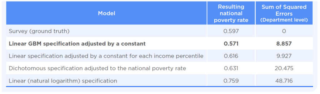 Tabla 1. Ejemplos de estimaciones de la tasa de pobreza utilizando diferentes técnicas de machine learning