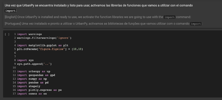Paso 2: Ejecutando las células del ejercicio en colab: Instalando UrbanPy