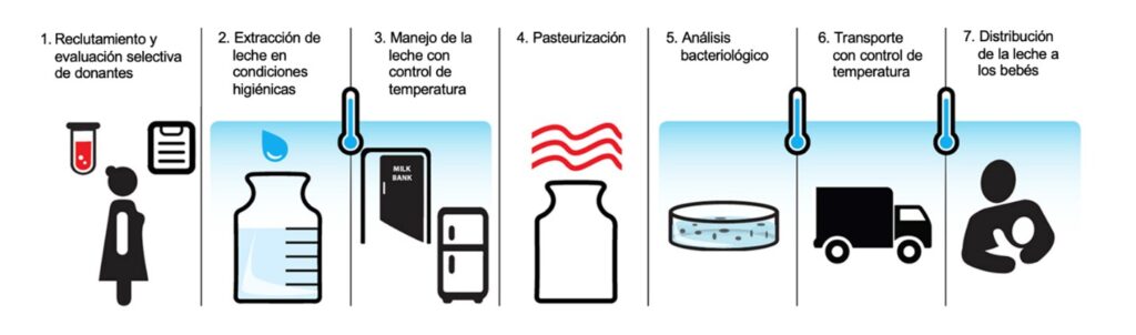 Según las directrices del Human Milk Banking Association of North America (HMBANA), el proceso para donar leche humana sigue un protocolo riguroso para garantizar la seguridad tanto del donante como del receptor (ver figura):