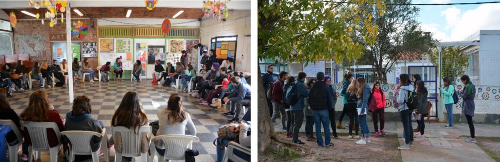Las actividades presenciales comenzaron en la feria semanal del barrio. La feria constituye el espacio de encuentro de la comunidad por excelencia y de intercambio y congregación de mayor cantidad de gente para esta comunidad. Por tanto, el proyecto no podía estar ausente en este espacio de referencia e instalamos un “puesto-stand” del Proyecto La Paloma. Todos los viernes se podía encontrar a representantes del proyecto en la feria.