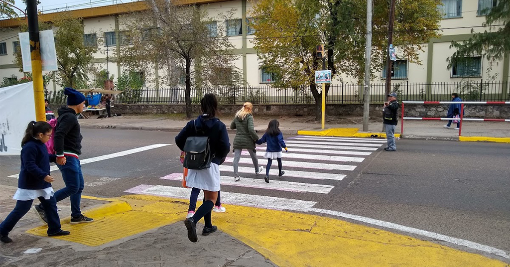 Camino escolar, Palpalá: ejemplo de un cruce antes y después, con pintura temporal para la prueba de concepto y posibles ajustes acorde al uso. La intervención cumple con todas las normas del tránsito y agrega aspectos mínimos de color y logos. Los niños, sus familias y la comunidad, tienen derecho a trasladarse de manera segura a la escuela. Mejorar las condiciones de sus trayectos podría ayudar a los gobiernos locales a reducir las muertes y lesiones ocasionadas por siniestros de tránsito, mejorar la seguridad y salud pública, entre otros beneficios. Desde el BID, hemos trabajado en una guía para la implementación de Caminos Seguros a la Escuela en la región de América Latina y el Caribe, a través de la cual, compartimos un conjunto de herramientas que tienen como objetivo ser un recurso de referencia para guiar y animar a la planificación, diseño, implementación y seguimiento de los caminos escolares, mejorando así la seguridad vial, en los viajes hacia y desde las escuelas realizadas por los niños de la región. Los caminos escolares seguros se centra no sólo en los niños sino también en sus padres y / o cuidadores, maestros y la sociedad en general, esto es, personas con las que los niños pueden interactuar a lo largo de su camino a la escuela. Como se pudo observar en este piloto de Palpalá, se tiene en cuenta a los actores de diferentes ámbitos, tanto locales como regionales: las autoridades educativas, tránsito, salud, obras, deportes, ocio, etc. Por lo tanto, esta herramienta puede ser empleada por las comunidades, ciudades, los tomadores de decisiones, asociaciones, organizaciones y todas las personas interesadas en el desarrollo de caminos seguros a la escuela. La implementación de un proyecto de esta naturaleza dependerá de la escala del proyecto y metas que se deseen alcanzar. Cabe recalcar que cada solución debe ser adaptada a su propio contexto, por lo que este documento no pretende ser una metodología, sino una exposición de elementos, herramientas y recomendaciones basadas en la experiencia del contexto latinoamericano que puedan ser de ayuda en la construcción de proyectos de caminos seguros a la escuela. Conoce sobre los caminos escolares seguros descargando la publicación.
