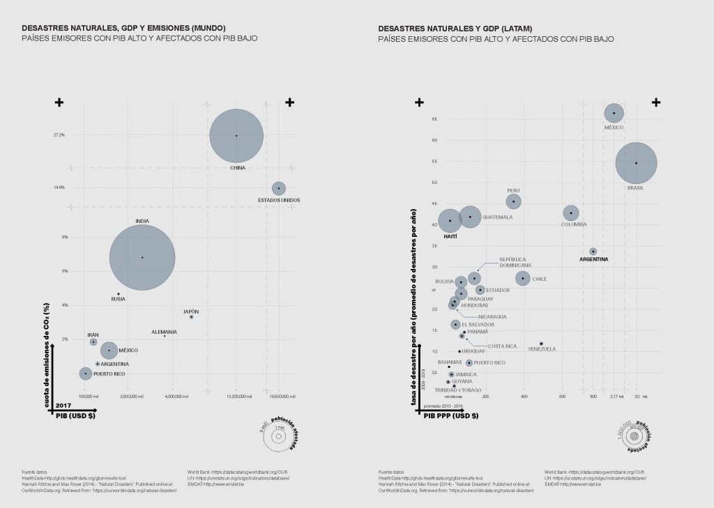 Si comparamos el PIB con la cuota de emisiones de gases de efecto invernadero de los países, en muchos casos se observa cómo la relación es directamente proporcional y, al mismo tiempo, inversamente proporcional a la población afectada; lo que pone de manifiesto temas de equidad, justicia social y derecho a la ciudad (Figura 1).