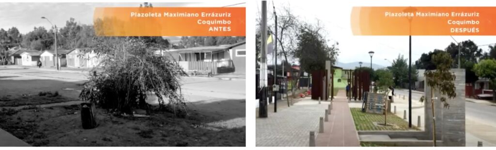 Las intervenciones sobre la infraestructura de los barrios pueden ser de diversas escalas. Un ejemplo de una intervención sobre infraestructura a pequeña escala es la que tuvo lugar sobre la Plazoleta Maximiano Errázuriz, un espacio público ubicado en el Barrio Guayacán en la Municipalidad de Coquimbo. Una de las características de esta iniciativa fue la participación de la comunidad, la cual se involucró de forma activa en el rescate de este espacio que antes era árido y vacío, y hoy es una plaza patrimonial que cuenta con la última tecnología en alumbrado público.