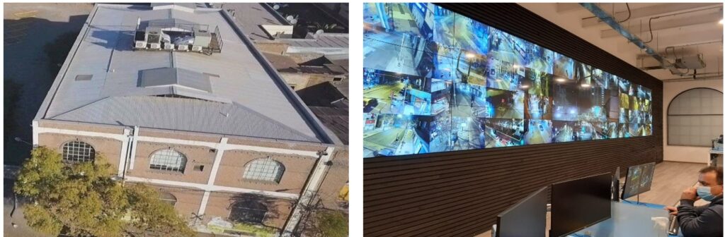Izquierda: foto aérea del complejo industrial. Derecha: Oficina de Seguridad de Santiago.Estos tres proyectos ponen en evidencia el enorme potencial que tiene la recuperación de inmuebles e infraestructura de carácter histórico y su transformación a través de nuevos usos y actividades. Sin embargo, como veremos en las próximas entregas de esta serie, el financiamiento de infraestructura es solo una de las dimensiones para la recuperación de los barrios patrimoniales.