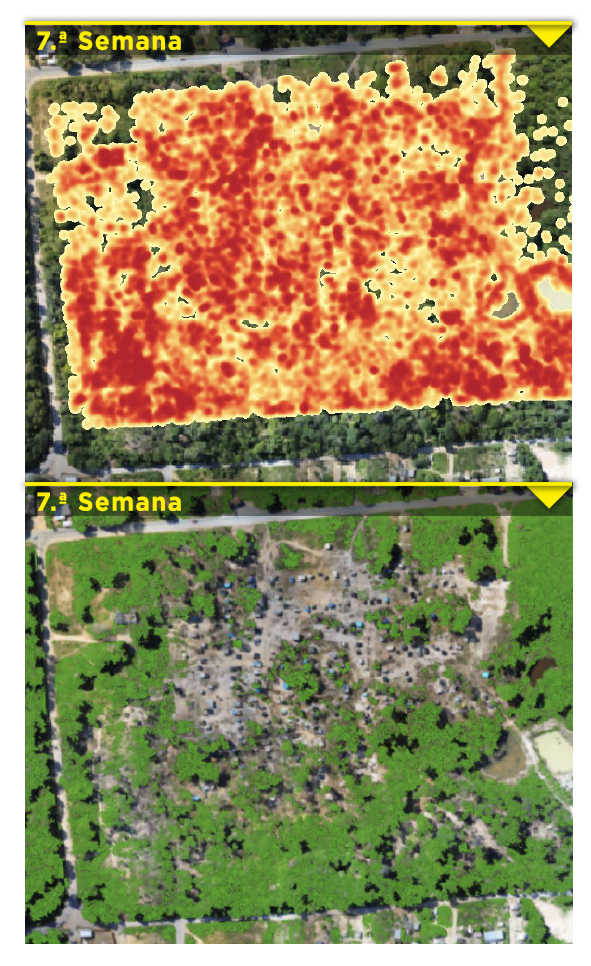 Figura 2: comparación entre la 2ª y la 7ª semana basada sólo en fotos de drones. IMG. BID