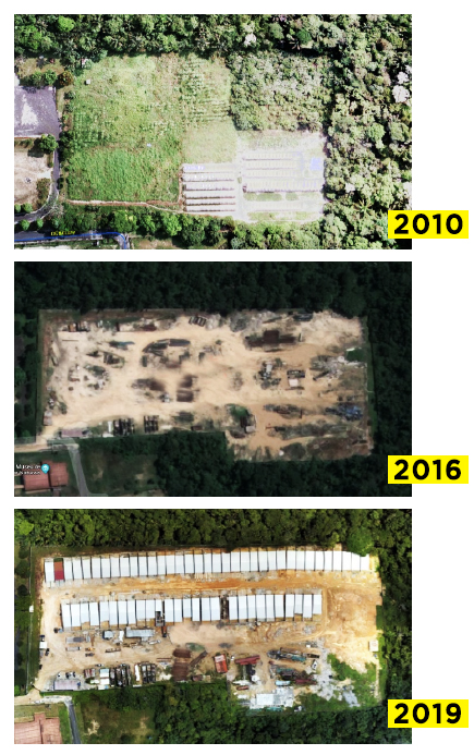 Figura 1: patrones informales de crecimiento de la ocupación en imágenes satelitales (2010, 2016) y de drones (2019). IMG. BID Como parte de la colaboración continua de la División de Vivienda y Desarrollo Urbano del BID para apoyar el desarrollo urbano sostenible de Manaos, se lanzó un piloto en colaboración con la Subsecretaría de Tecnología de la Información (SubTI) de Manaos para probar si el uso de drones aumentaría la eficiencia del monitoreo de crecimiento de los asentamientos informales. El piloto incluyó 50 vuelos, el uso de soluciones en inteligencia artificial y machine learning, entrenamientos a los gestores (funcionarios del municipio) y la participación de cuatro secretarias. La flexibilidad y disponibilidad de los drones permite visualizar y monitorear en tiempo real el estado y evolución de la ocupación informal, dándole así a la municipalidad la información necesaria e inmediata para la toma de decisiones. El estudio aereo de los drones en el piloto demostró la actividad informal del lugar designado; una comunidad que ya cuenta con más de 60 viviendas. La ciudad tenía originalmente dos imágenes de satélite de la zona de los años 2010 y 2016 y no contaba con nuevas imágenes para observar los nuevos desarrollos. Estas nuevas herramientas permitieron un monitoreo frecuente y más reciente, el cual demostró que el crecimiento de la ocupación informal es rápido y debe monitorearse con frecuencia. De acuerdo a los objetivos del piloto, se realizó un monitoreo aéreo para vigilar el crecimiento real de los patrones de ocupaciones informales y evaluar así la posibilidad de utilizar drones en lugar de otros métodos tradicionales. Semanalmente, se monitorearon tres áreas de 15 hectáreas cada una, durante tres meses para detectar cambios en el uso de la tierra. Además, se utilizaron soluciones en machine learning para analizar las imágenes e identificar patrones de crecimiento informal. Una de estas soluciones, denominada LATAM fue desarrollada por la empresa argentina Dymaxion Labs y se puede conseguir en la plataforma Código para el Desarrollo del BID. Esta solución ayudó a comparar imágenes del área preseleccionada (ver fotos a continuación). Aunque la diferencia se nota a simple vista, puede ser difícil cuantificarla y medirla. Gracias al análisis del machine learning, las imágenes mostraron que en el corto período de cinco semanas hubo un aumento del 129% en la construcción informal en el campo (de 85 a 195 techos). De esta forma, se confirma que el patrón de crecimiento de la ocupación informal ocurrió casi diariamente, lo cual requiere de una solución inmediata.