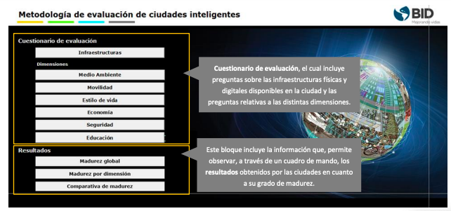 Para conseguir este objetivo, el BID ha desarrollado una metodología innovadora que evalúa el estado de madurez smart de ciudades de ALC en su proceso de migración hacia modelos de gestión más inteligentes. El BID no ha estado solo, pues ha contado con el apoyo de la firma Deloitte y de fondos de Cooperación del Gobierno de España y del Programa de Desarrollo Estratégico para la Sostenibilidad.