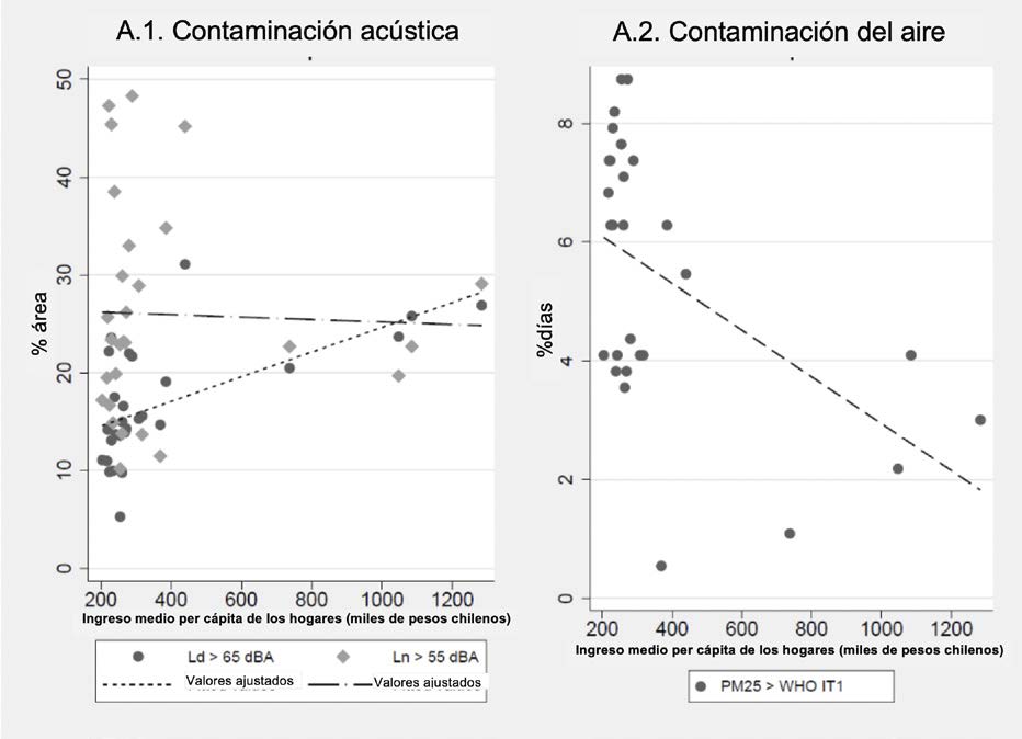 En todo el mundo hay evidencia de que los grupos socioeconómicos más bajos están más expuestos a la contaminación atmosférica y acústica. ALC no es una excepción. Un estudio publicado en 2015 documenta que las zonas de Santiago de Chile con menor nivel socioeconómico tienen un 21% más de días con calidad de aire insalubre que otras zonas de la ciudad.
