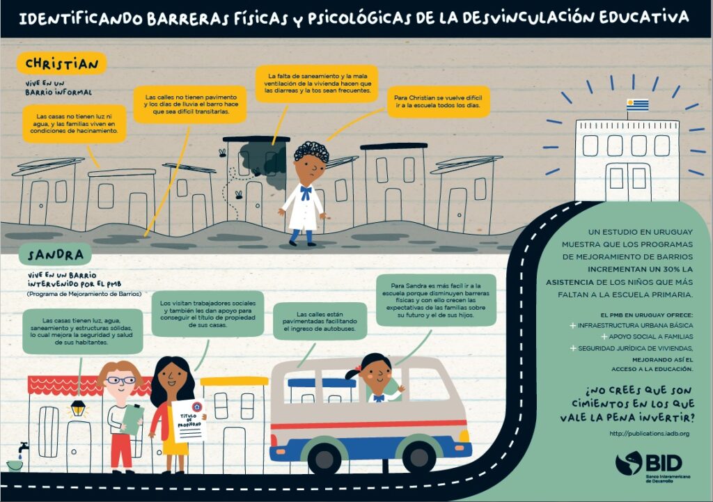 Por este motivo, el blog de hoy lo dedicaremos a exponer un reciente estudio que ha encontrado evidencia sobre el impacto positivo que tienen los programas de mejoramiento de barrio financiados por el BID, en favorecer la asistencia a clase de niños de primaria. ¿Te animas a descubrirlo?
