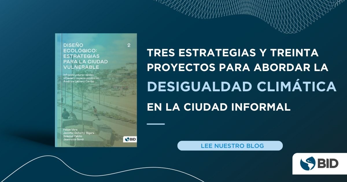 En 2021 el BID publicó Diseño Ecológico: estrategias para la ciudad vulnerable, una publicación que reconoce y cuantifica los desafíos de la ciudad informal frente al cambio climático. Es el primer volumen de una serie de publicaciones que presentan elementos de reflexión, datos e instrumentos operativos para aumentar la resiliencia de las ciudades de la región y sus asentamientos más vulnerables.