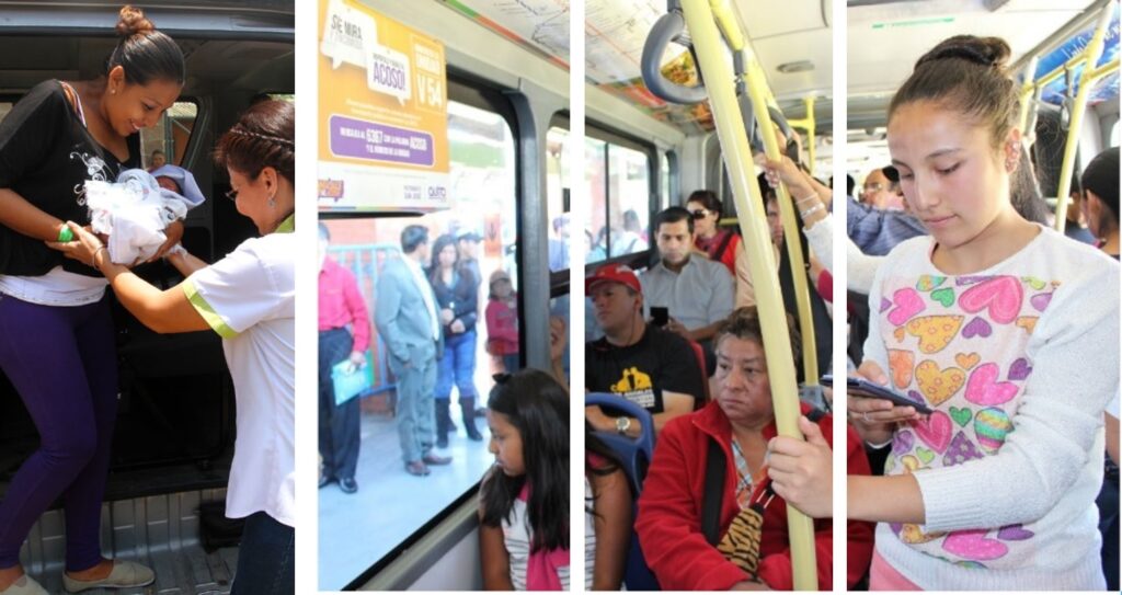 La falta de planificación con perspectiva de género puede hacer que viajar sea más complicado, más caro, y más peligroso para las mujeres que para los hombres. Las mujeres, generalmente, dependen más que los hombres del transporte público. En ALC, en promedio, más del 50% de los usuarios de transporte público son mujeres. Esto conlleva a que, las mujeres también tengan el doble de probabilidades que los hombres de ser víctimas de violencia de género en el transporte público, lo que les impide disfrutar de un acceso equitativo a la movilidad. Así mismo, la mayoría de las rutas y aceras de autobuses públicos existentes en la región no están diseñadas teniendo en cuenta las necesidades de las mujeres. Por lo general, las mujeres usan el transporte público en intervalos más frecuentes, combinando su viaje diario de trabajo con viajes a la escuela, guarderías, centros de salud y viajes para ir de compras. Los datos muestran que tener un niño pequeño en casa aumentará el número de viajes que realiza una mujer.