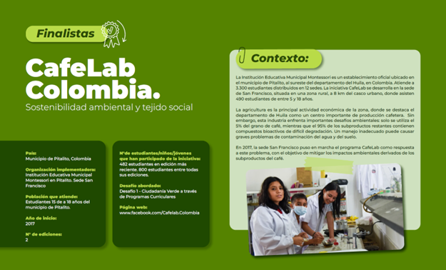 Aportan un valor esencial porque al integrar el aprendizaje ambiental en los planes de estudio escolar aseguran la enseñanza formal de habilidades y llegan a una amplia base de estudiantes. Entre los ejemplos, está Café Lab, de Colombia, que transforma los residuos del café en soluciones sostenibles mediante un modelo educativo basado en proyectos, empoderando a los estudiantes como líderes ambientales y promoviendo la economía circular en comunidades cafetaleras. También está HaciendoECO, de Guatemala, un programa educativo que promueve la formación ambiental, la gestión responsable de residuos y la acción comunitaria en escuelas, municipios y hogares, empoderando a más de 44.000 estudiantes para transformar su relación con el ambiente.