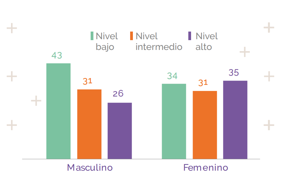 Fuente: Encuesta Regional de Estudiantes BID-IPA en Tiempos de COVID (2022)Sin embargo, a pesar de disfrutar de las materias de ciencia, tecnología, ingeniería y matemáticas, la proporción de estudiantes con altos niveles de ansiedad matemática es 10 puntos porcentuales más alta entre las mujeres que entre los hombres. Como se ha descubierto que la ansiedad matemática influye en el interés, el rendimiento, la persistencia y la motivación, podría limitar potencialmente el interés de los estudiantes de secundaria en seguir carreras STEM.