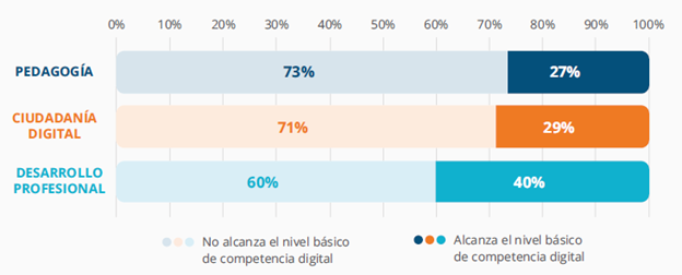 Solo 1 de cada 4 de los docentes encuestados alcanza un nivel básico de competencia digital en el uso pedagógico de la tecnología.