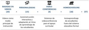 *El BID condujo un mapeo con una búsqueda inicial con 5.184 consultas en internet y consultas individuales a 20 expertos e informantes clave. De ahí la identificación de 57 aulas virtuales en América Latina y el Caribe. Una posterior categorización permitió clasificar estas herramientas en los 4 grupos descritos anteriormente. El informe del mapeo integral elaborado por Ignacio Jara y Manuel Ochoa (2019) está disponible bajo solicitud.
