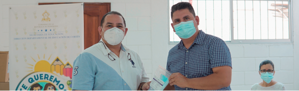 En el marco del Programa Regional “Apoyo a la rematriculación escolar y la recuperación de los resultados de aprendizaje para los jóvenes vulnerables de Mesoamérica en virtud de la pandemia de COVID-19”, el Fondo Especial Japonés administrado por el Banco Interamericano de Desarrollo financió la entrega de 53,335 kits de protección personal, 3,315 termómetros y 450 protectores faciales beneficiando a los Gobiernos de El Salvador y Honduras.