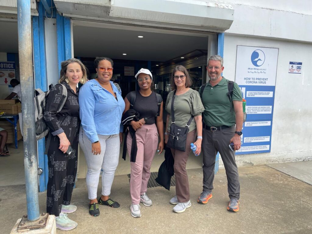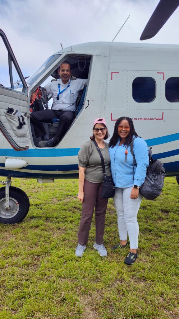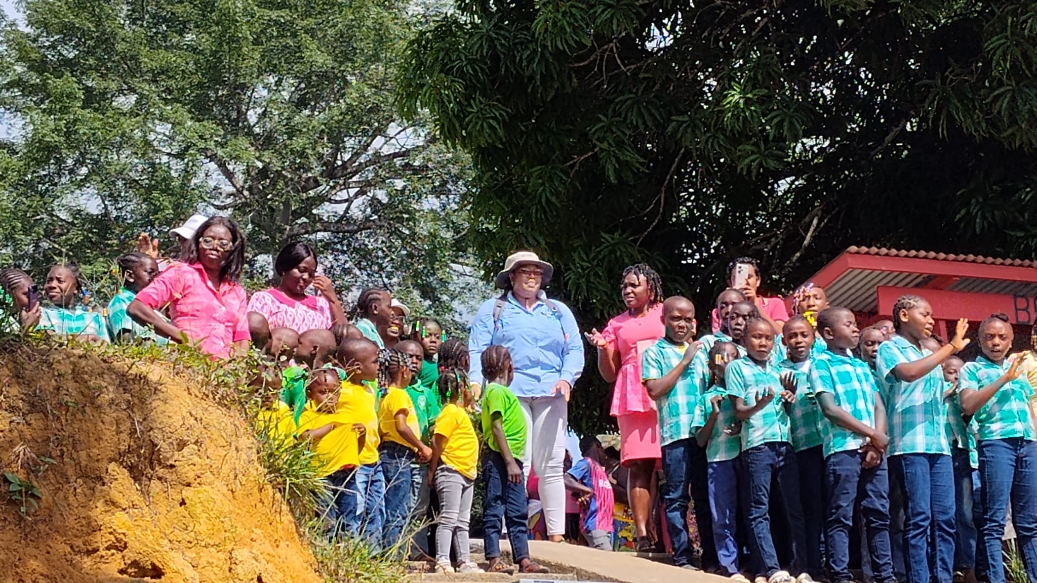 El 24 de marzo de 2025, regresé a O.S. Bofokule, esta vez en avión—un vuelo de 45 minutos, seguido de un trayecto de 30 minutos en bote. Estaba menos nerviosa que la primera vez, llena de emoción y curiosidad. Al llegar, nos recibieron niños cantando, padres y maestros ondeando las manos, un nuevo área de juegos, un quiosco y, lo más importante, una hermosa escuela renovada para niños de 4 a 12 años.