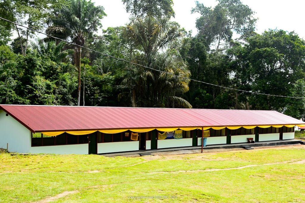 Una escuela bien construida solo es útil si se mantiene en buenas condiciones. Este proyecto desempeñó un papel clave en el fortalecimiento de los estándares de infraestructura escolar en Surinam e introdujo una guía de mantenimiento escolar que asegurará que los edificios permanezcan seguros y funcionales por muchos años. Volví a tomar una foto del director del programa—esta vez, no sumido en pensamientos, sino de pie con orgullo frente a la escuela renovada, con un pangi sobre su hombro, un símbolo de gratitud del capitán de la aldea.