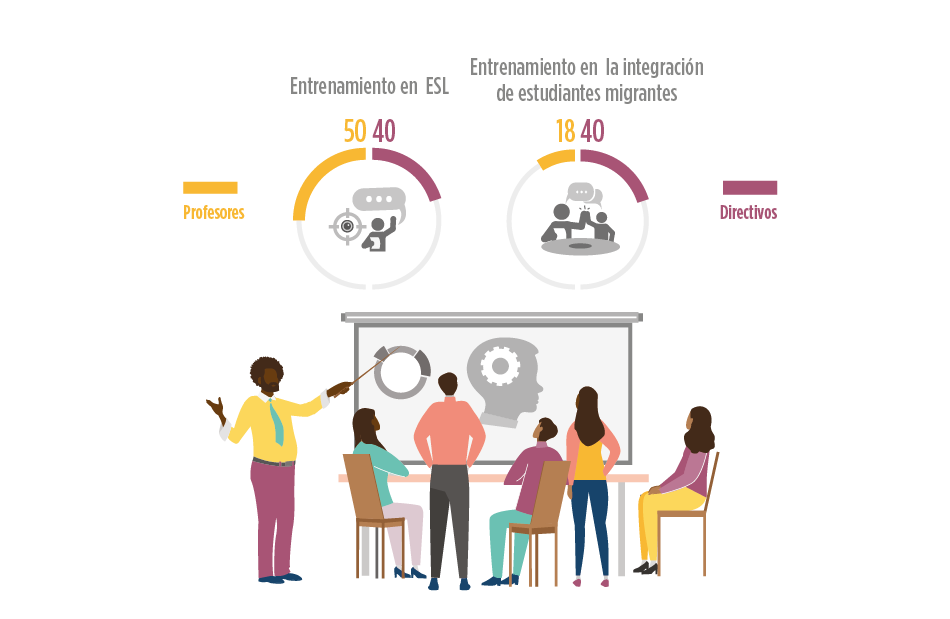 Fuente: Näslund-Hadley, A. Elías, E. Café and H. Alonzo. (2020). “Schools at a Crossroads: Integration of Migrant Students in Belize.” Inter-American Development Bank. Descarga el estudio haciendo clic aquíLos docentes, por su parte, también enfrentan desafíos para integrar a los estudiantes migrantes tanto dentro como fuera de clase. Comúnmente, las escuelas no implementan pruebas diagnósticas para evaluar las competencias lingüísticas o matemáticas de los estudiantes, lo que dificulta la implementación de estrategias de enseñanza de apoyo ó compensatorias. También carecen de habilidades para manejar ambientes de aprendizaje multiculturales por lo que, de manera inconsciente, pueden generar situaciones de exclusión o rechazo.