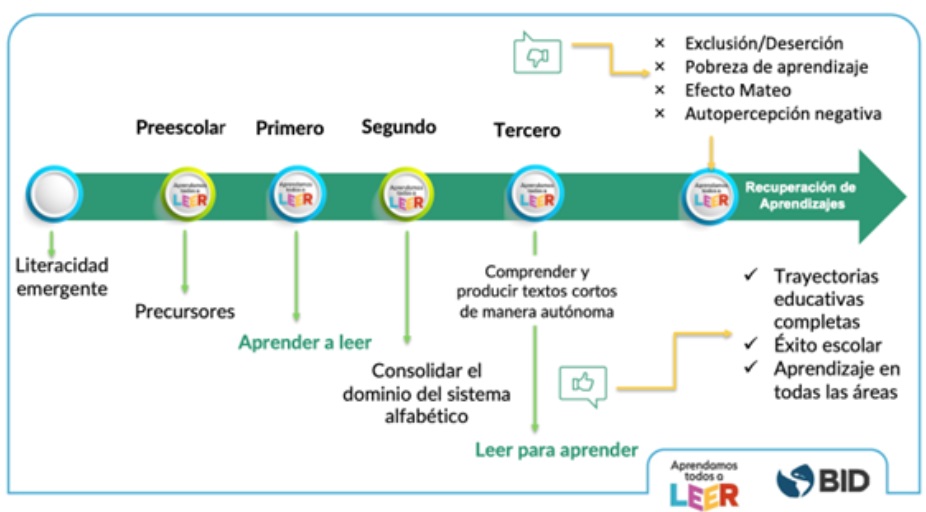 Aprendamos Todos a Leer ha pasado de ser un programa centrado en el desarrollo de materiales con una metodología basada en evidencia a uno enfocado en desarrollar técnicamente los elementos necesarios y suficientes para atender las diferentes dimensiones, dificultades, y retos de la enseñanza de la lectura y la escritura.,