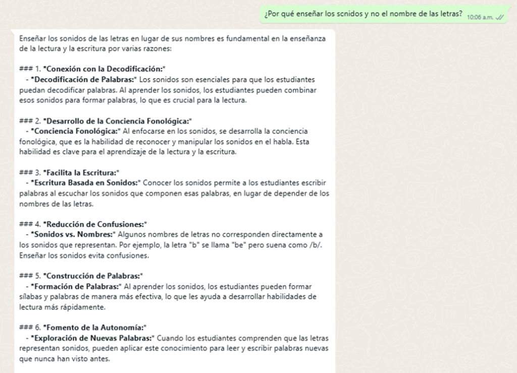 Además, para ampliar nuestro ecosistema de apoyo, el año pasado lanzamos a Leo, el chatbot de ATAL, y este año presentamos a La Profe Azul, un asistente virtual desarrollado junto con UNICEF. Finalmente, y como respuesta directa a los comentarios y preguntas recibidas, hemos publicado diferentes entradas en nuestro blog Enfoque Educación. Todo esto nos motiva: responder a la solicitud de apoyo y ofrecer recursos que consideramos de gran utilidad para quienes tienen la valiosa responsabilidad de alfabetizar.