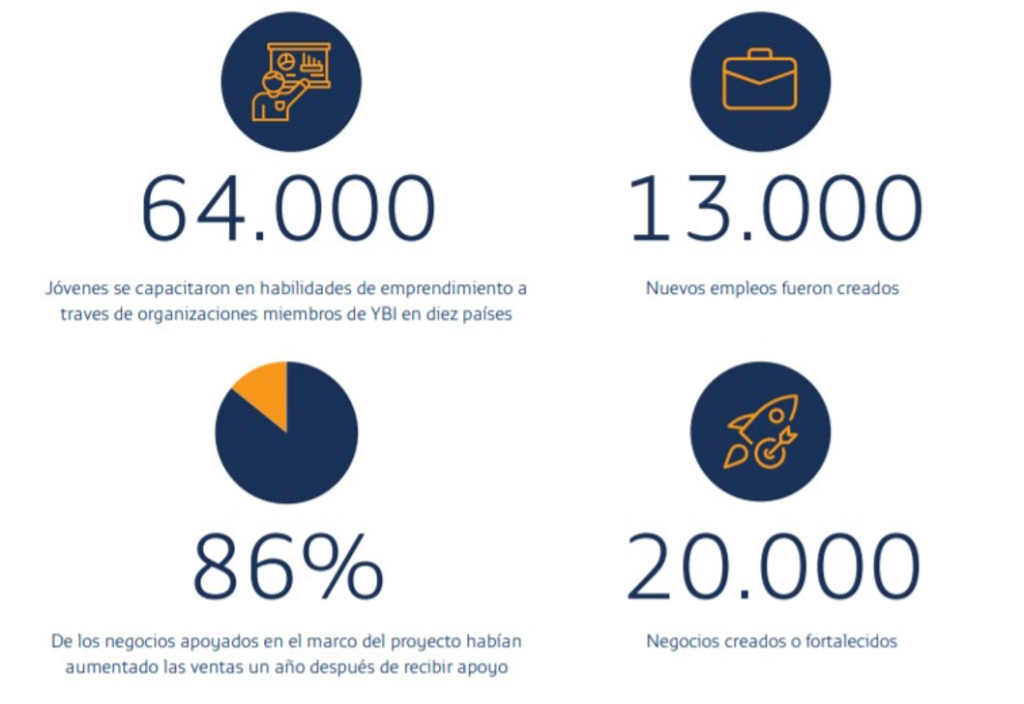 A través del YEP se buscó identificar organizaciones que brindaran formación en las habilidades requeridas por los emprendedores, con miras a mejorar los servicios prestados y, a la vez, fortalecer a dichas organizaciones. La ambición era sentar las bases de un ecosistema de apoyo a esta población. Para dicha tarea se buscó una alianza con Youth Business International, una ONG inglesa que opera en más de 50 países a nivel mundial y que buscaba expandir en el momento su red de aliados en LAC. Otro elemento clave en el programa fue el enfoque de digitalización, no solo de los servicios de formación a través de plataformas, sino también de las organizaciones implementadoras. Varias se beneficiaron de este esfuerzo por cerrar la brecha digital justamente antes de la pandemia en 2020. ¡Esto marcó la diferencia! …ya que pudieron seguir ofreciendo servicios durante la pandemia, permitiéndole a los emprendedores solventar la crisis cuando la virtualidad se volvió la norma para muchos!
