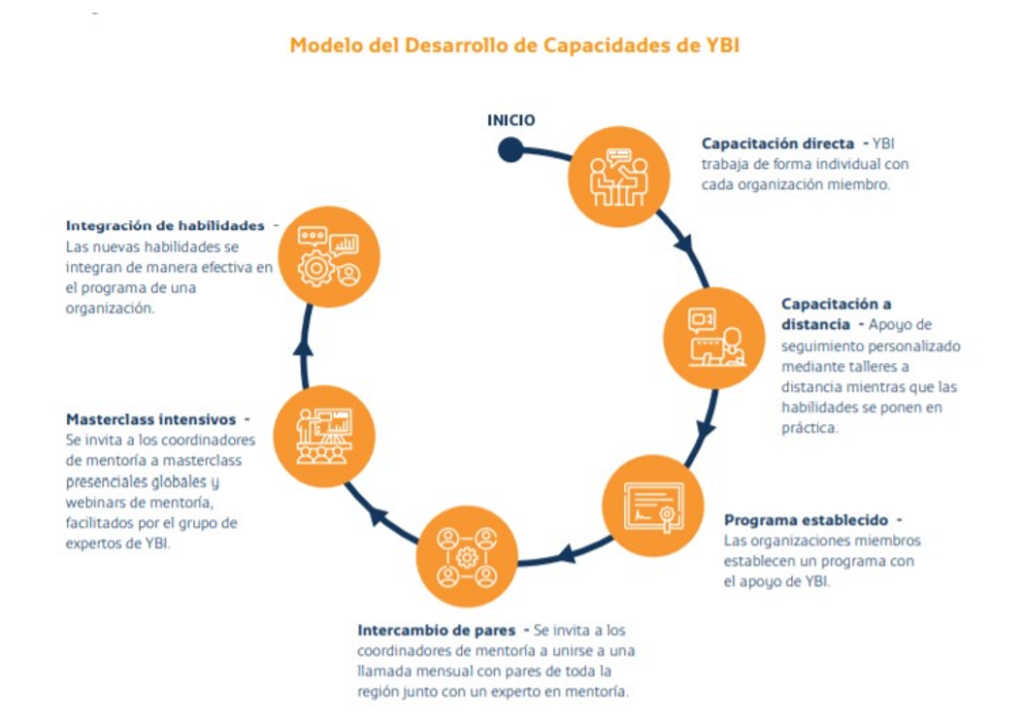 Ayudar a que más jóvenes emprendedores a crear y crecer sus empresas, a través del fortalecimiento de las organizaciones que apoyan el emprendimiento juvenil, es la misión de YBI. El enfoque es fomentar la innovación y refinar los cursos (ya sean estos de finanzas, marketing, comunicación, habilidades blandas o la metodología de mentoría, tema en que YBI ha venido trabajando desde hace más de 10 años) para lograr la identificación, preparación y seguimiento exitoso de mentores que acompañen a los jóvenes en su trayectoria de crecimiento. El refinamiento de las metodologías de capacitación incluye masterclasses que llevan a la organización a otro nivel en lo que respecta a enriquecer su currícula y mecanismos de entrega.
