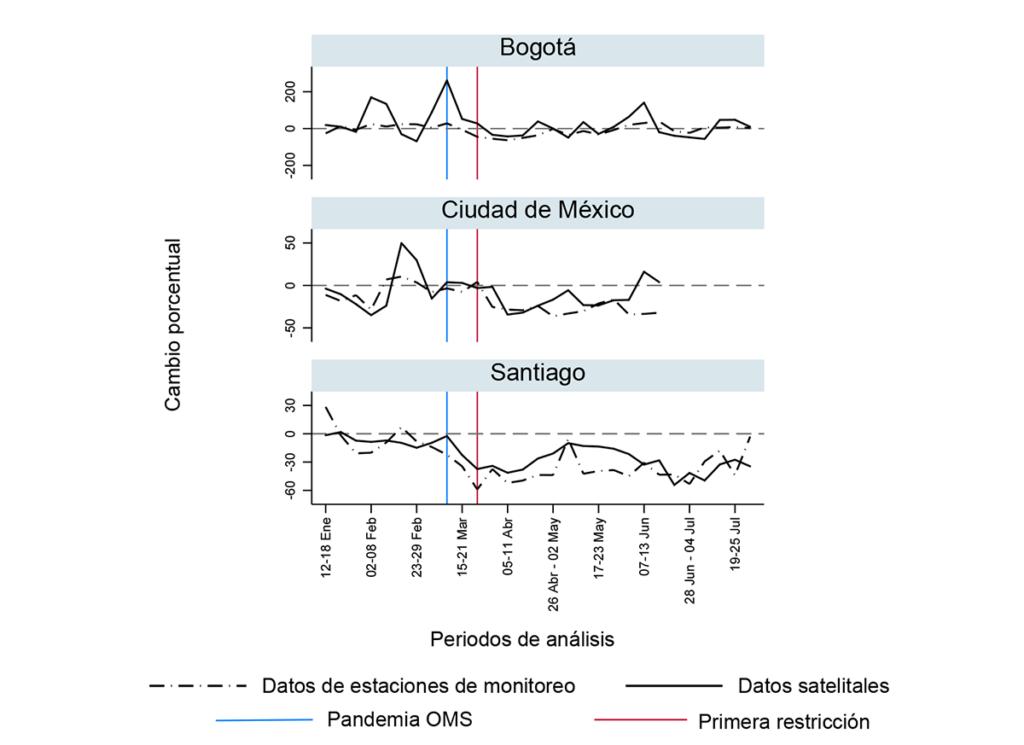 En un comienzo la calidad del aire, medida por estaciones de monitoreo de calidad del aire y por datos satelitales, mejoró en numerosas ciudades de América Latina y el Caribe. Sin embargo, con el tiempo ha quedado claro que las mejoras no han sido tan grandes y persistentes como se esperaba y que estas varían ampliamente de ciudad en ciudad y según los tipos de contaminantes. Esto ilustra la importancia que tienen en la medición de los niveles de calidad del aire las condiciones climáticas locales y las fuentes de emisión adicionales a las relacionadas con actividades humanas, como ser el conducir automóviles o las actividades industriales.