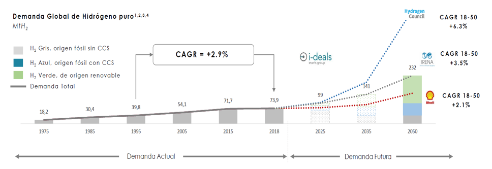 Fuente: elaborado por I-Deals basado en la información de IRENA, el Hydrogen Council, AIE y Shell (2021)