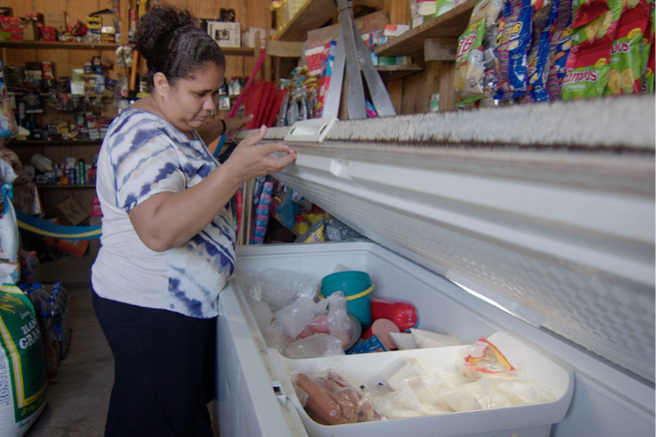 Mujer con productos refrigerados en el Municipio Gracias a Dios