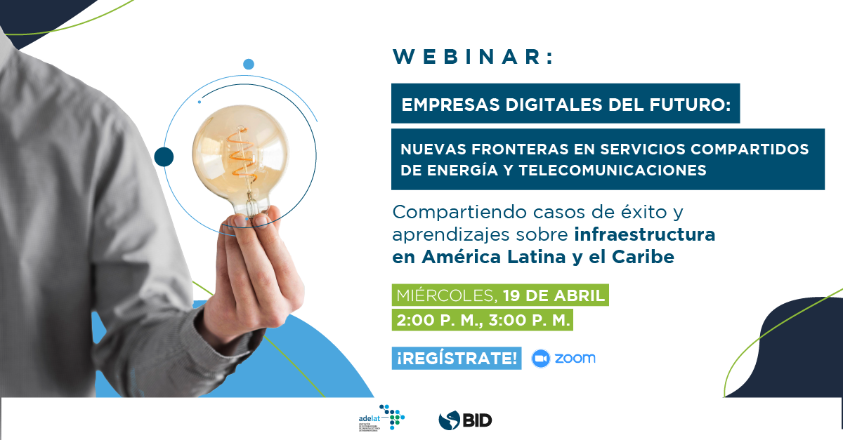 Por ello, el próximo 19 de abril a las 14:00 (ET) el BID, en colaboración con la Asociación de Distribuidoras de Energía eléctrica Latinoamericanas (ADELAT), realizará el taller virtual “Empresas digitales del futuro: nuevas fronteras en servicios compartidos de energía y telecomunicaciones”.
